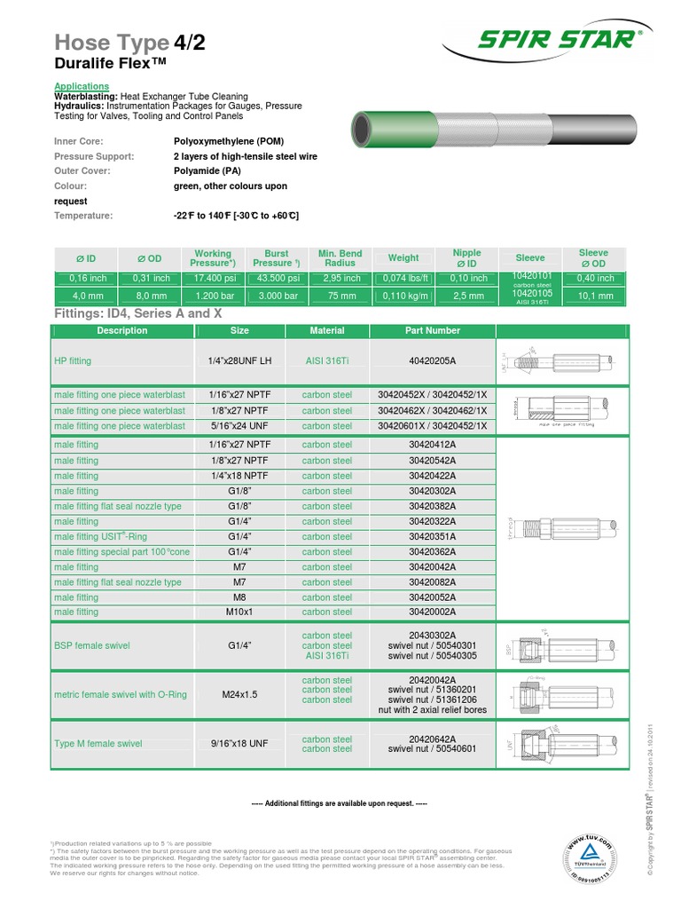 Spir Star Duralife Flex Hose Type 4/2 Data Sheet PDF Carbon Steel