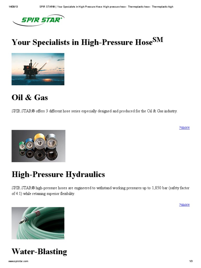 SPIR STAR® Your Specialists in HighPressure Hose HighPressure