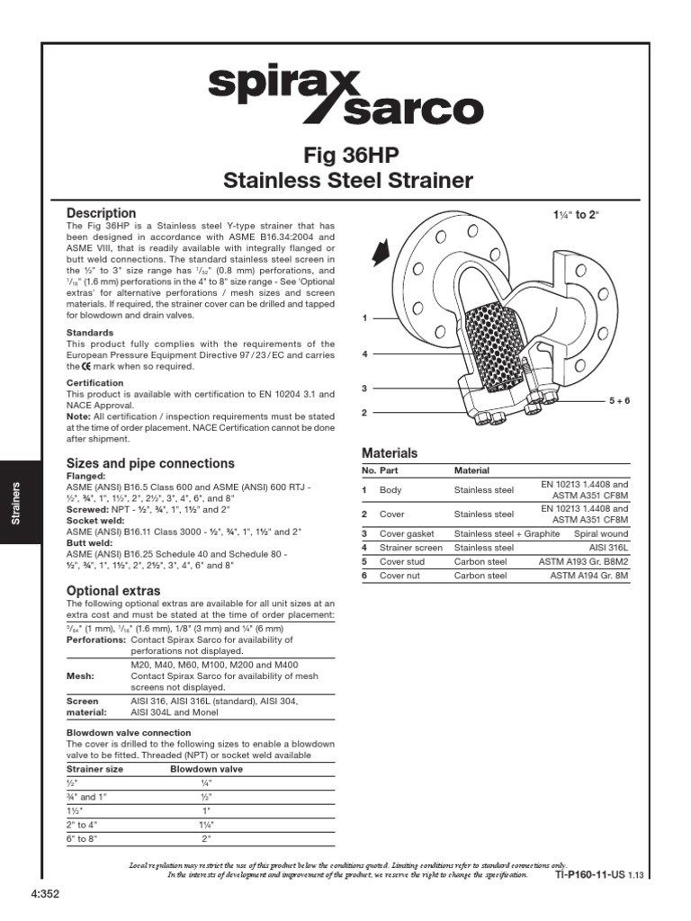 Fig 16 and Fig 16L Austenitic Stainless Steel Strainers Spirax Sarco
