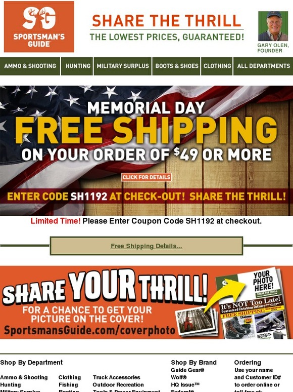 Sportsman's Guide Get Free Shipping on Your Order... Limited Time