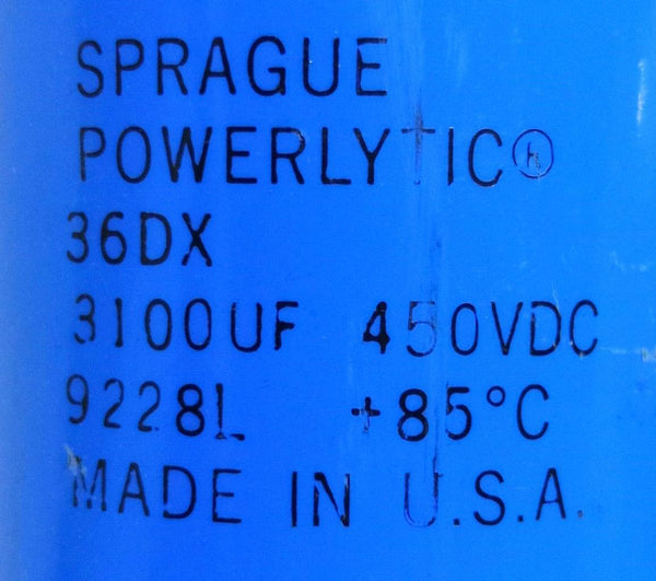 Sprague Powerlytic 36DX 3100uf 450VDC Positive Electrolytic Capacitor