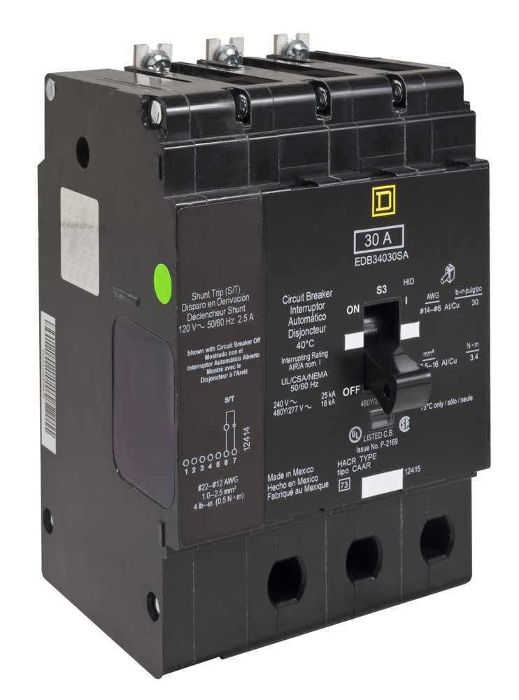 Square D EDB34030 3TW40 Bolt On Circuit Breaker 30a 3p 18ka 277v
