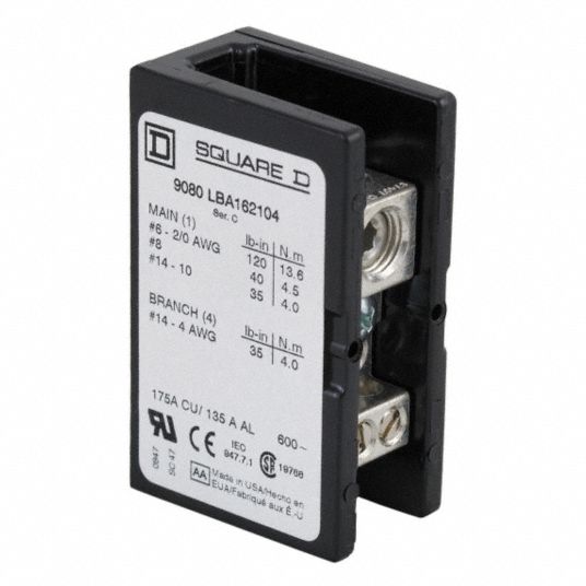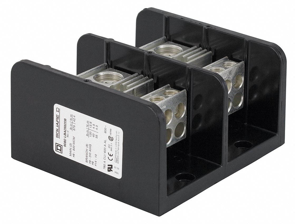 Square D™ 9080LB Power Distribution Block, 600 VAC, 500 A, 6 AWG to 350