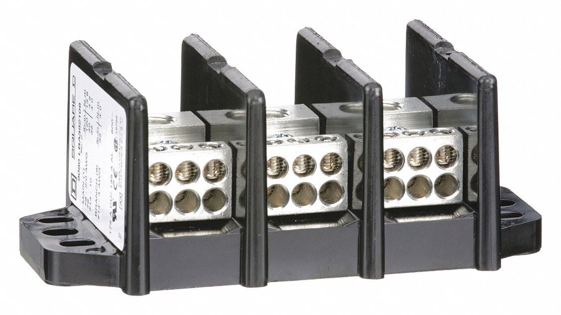 SQUARE D Power Distribution Block 3 Poles, Surface Mount 2DD70