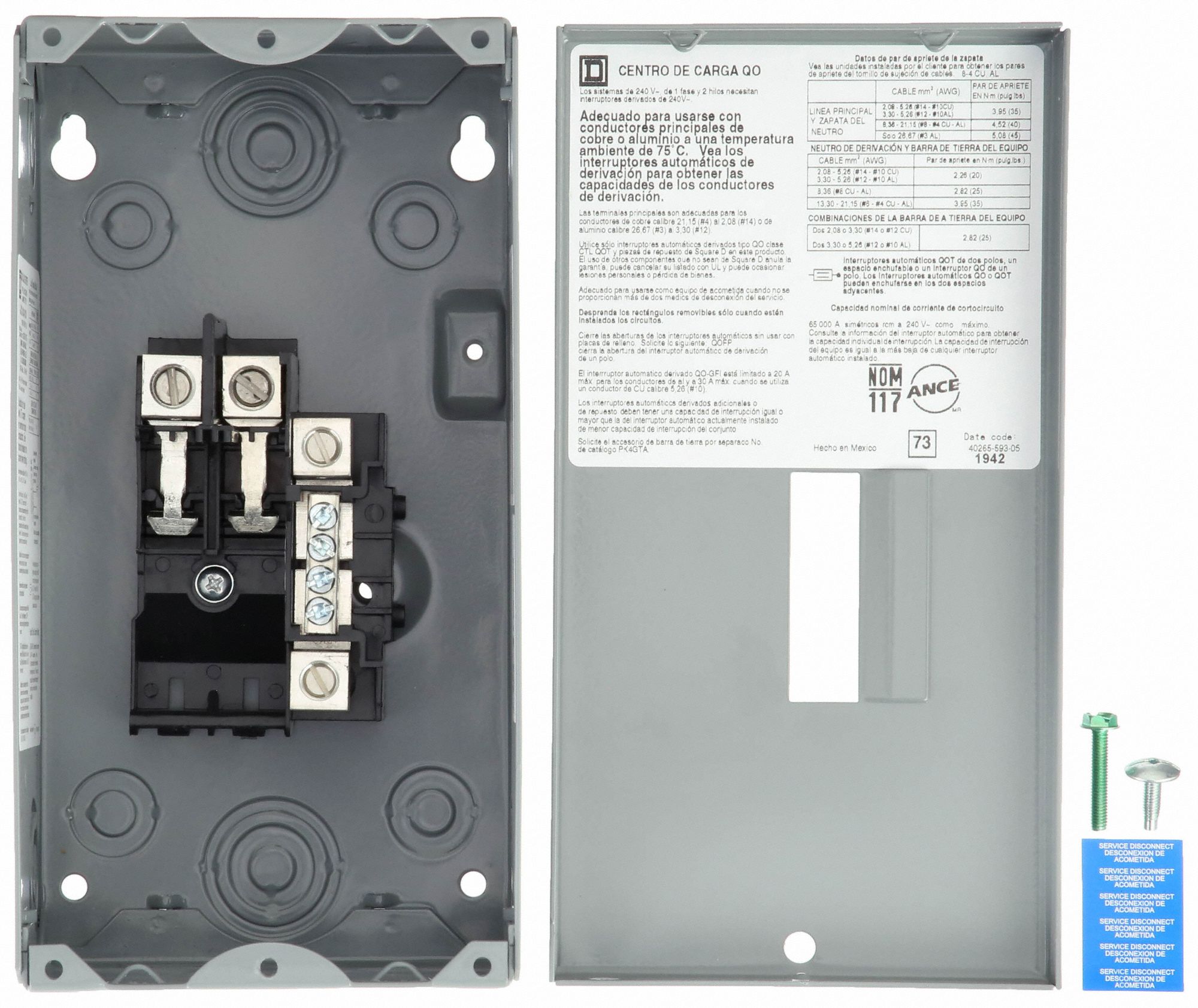 SQUARE D Load Center 70 A Amps, 120/240V AC, 2 Spaces, 65kA, 2 Max. No