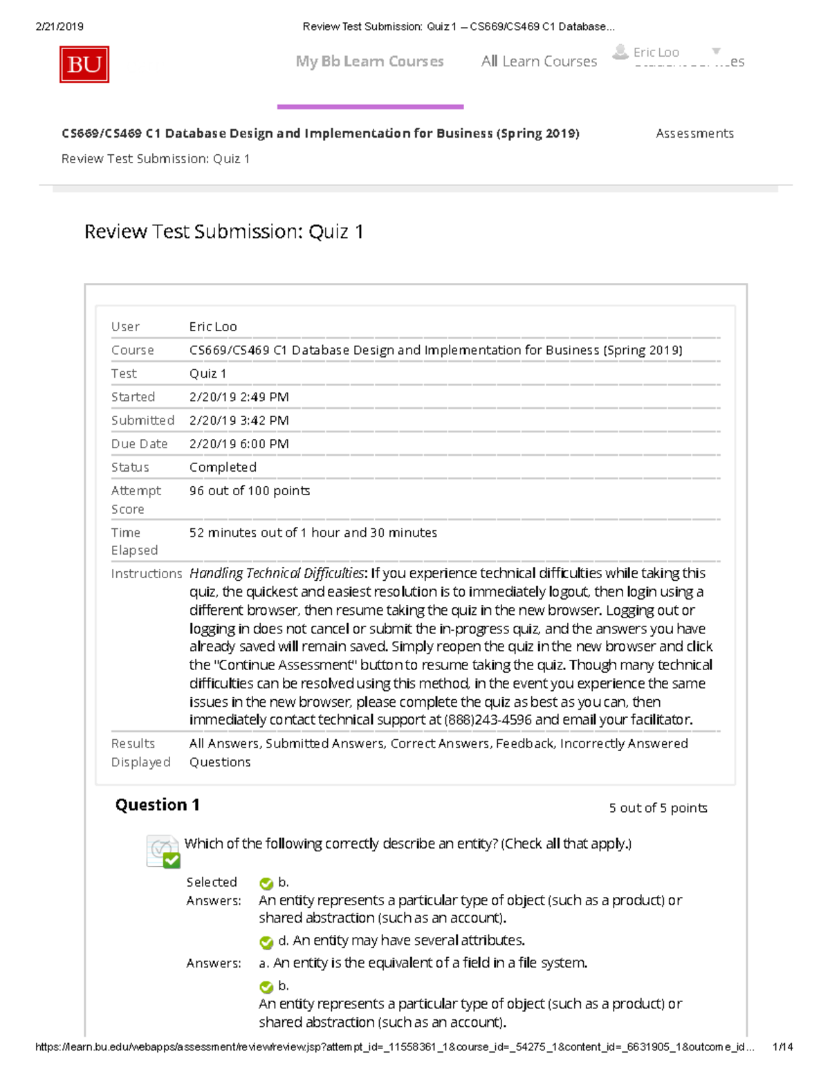 CS 669 Quiz Review Database Design and Implementation (Spring 2019
