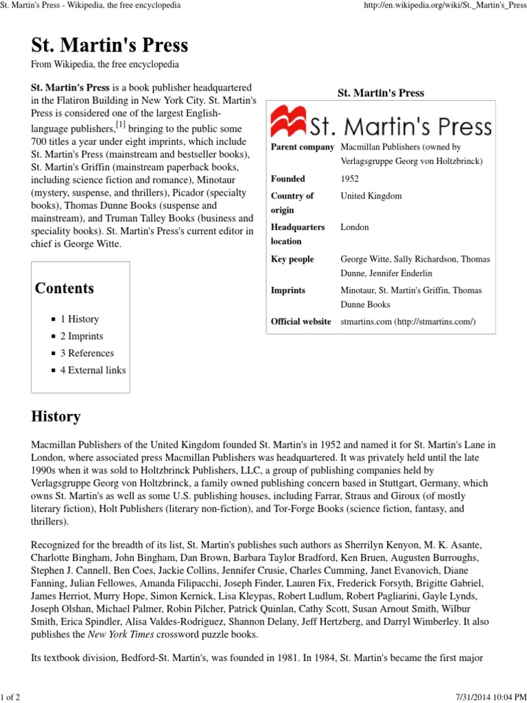 St. Martin's Press Is A Book Publisher Headquartered PDF Book