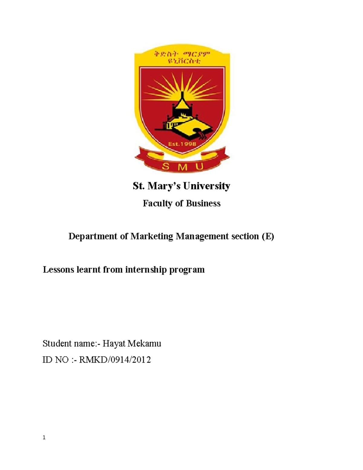 Individual Assignment (Final) St. MARY’S UNIVERSITY SCHOOL OF