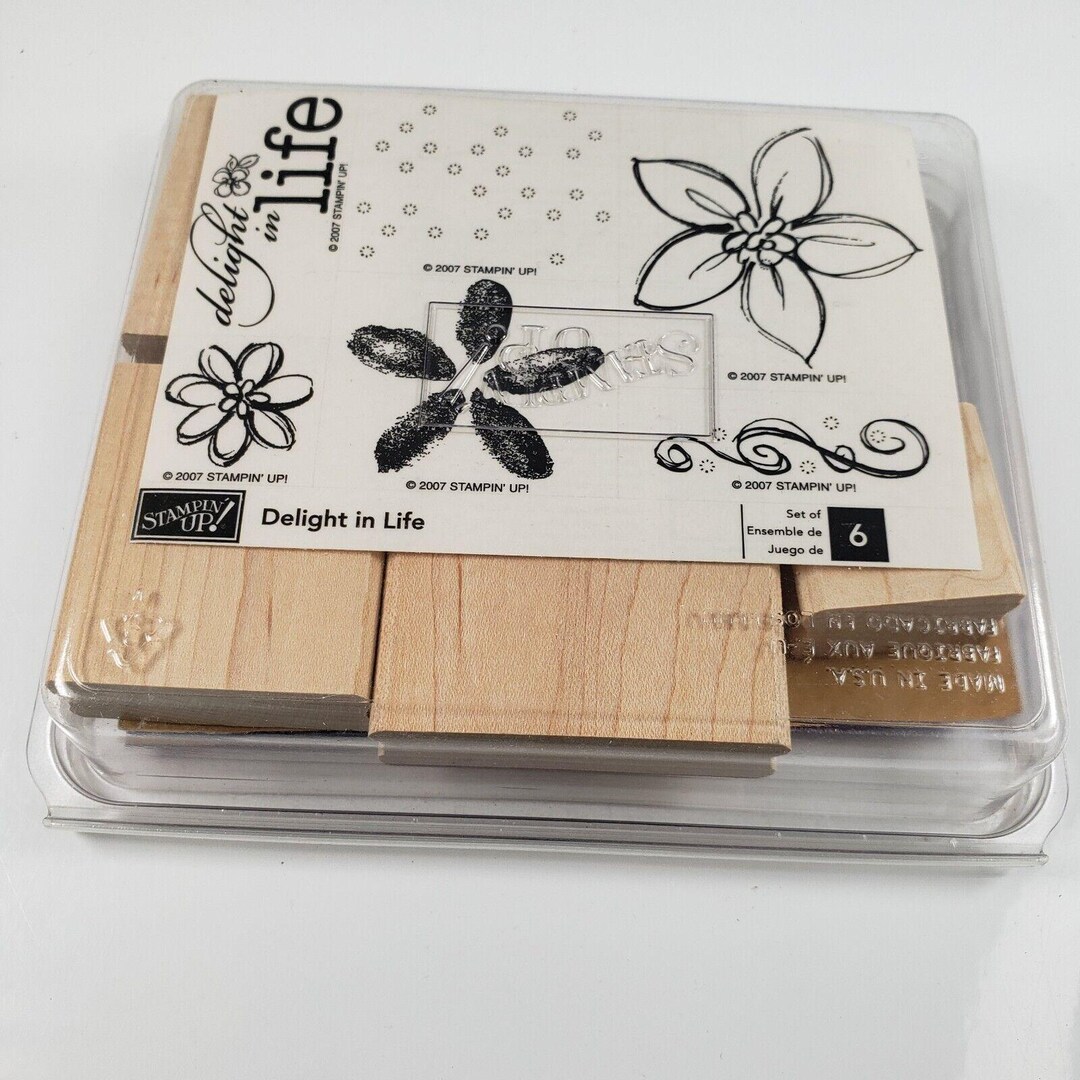 Stampin' up 2007 "delight in Life" Set of 6 Wood Mount Rubber Stamps