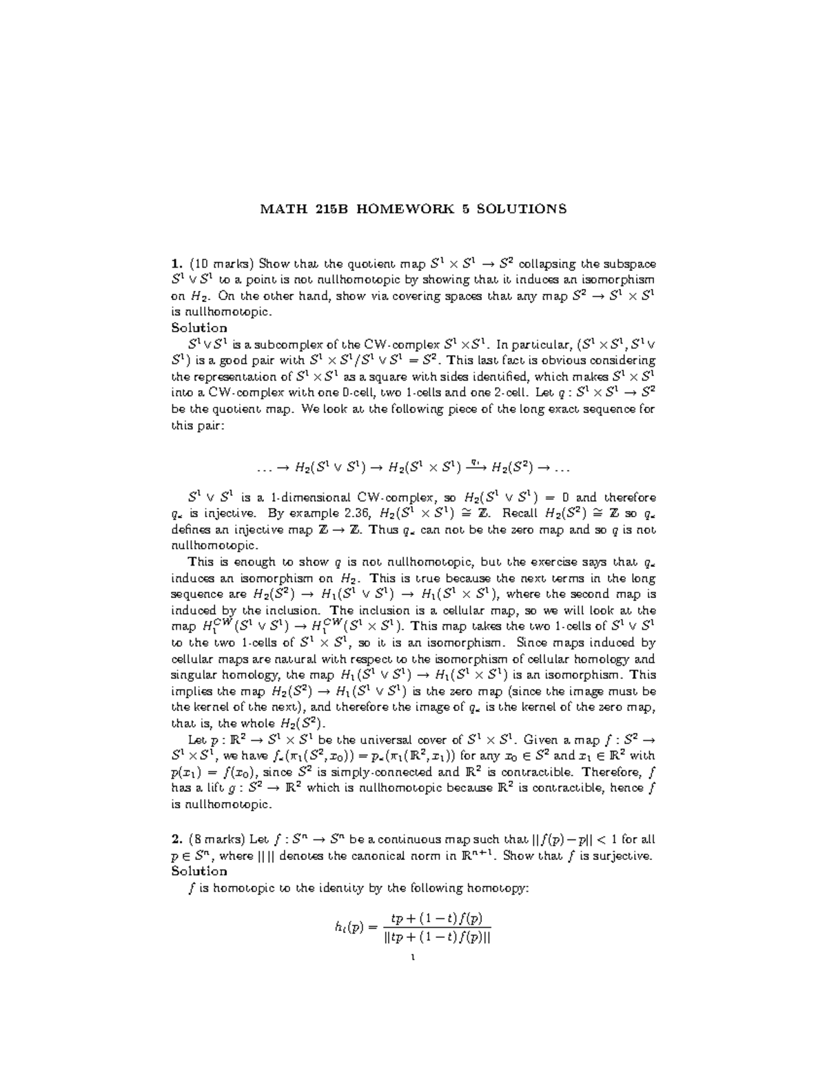Stanford Math 215b Sol5 (10 marks) Show that the quotient map S 1 × S