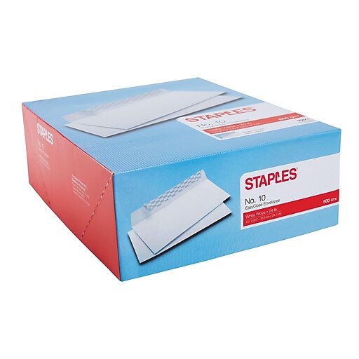 Staples Easy Close 10 Envelope, 41/8" x 91/2", White, 500/Box