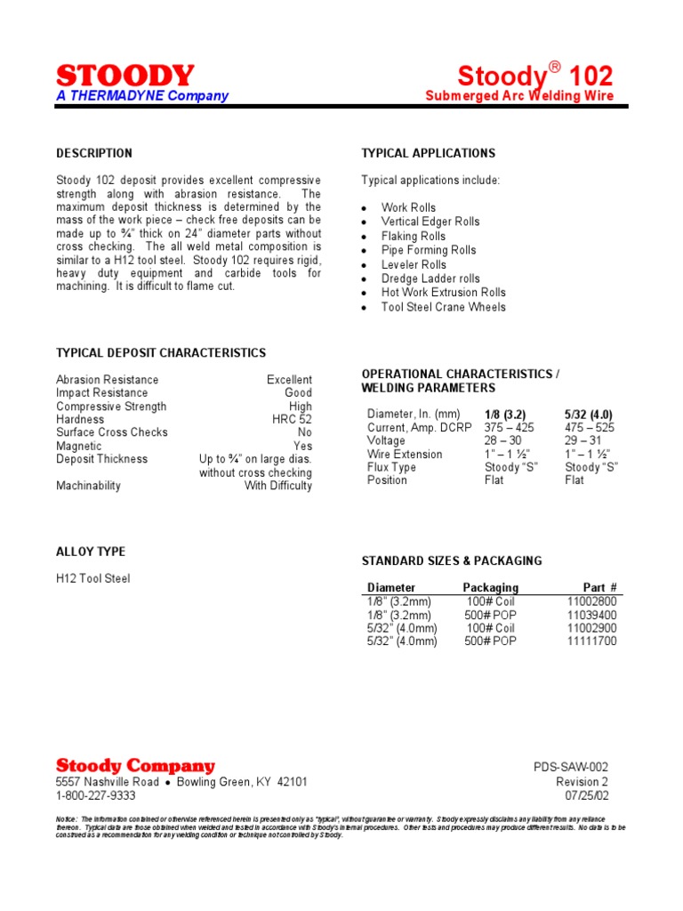 Stoody 102S SAW002 PDF Welding Construction