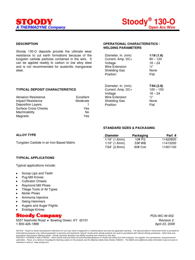 Stoody 130 PDF Tungsten Steel