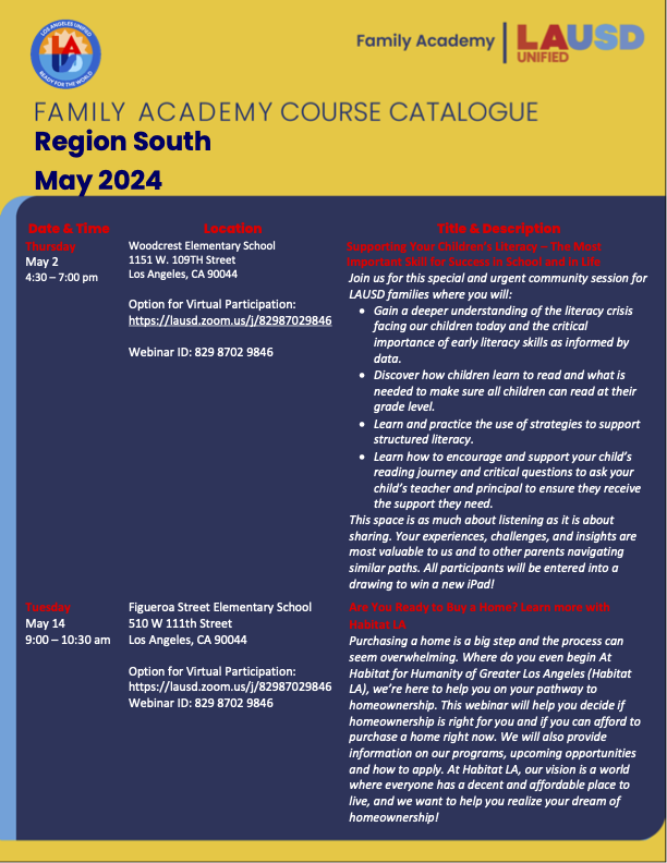 LAUSD October Family Academy Course Catalog Leapwood Elementary