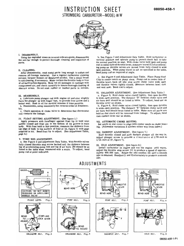 Bendix Stromberg PR58E2 Injection Carburetors Instruction Manual Form