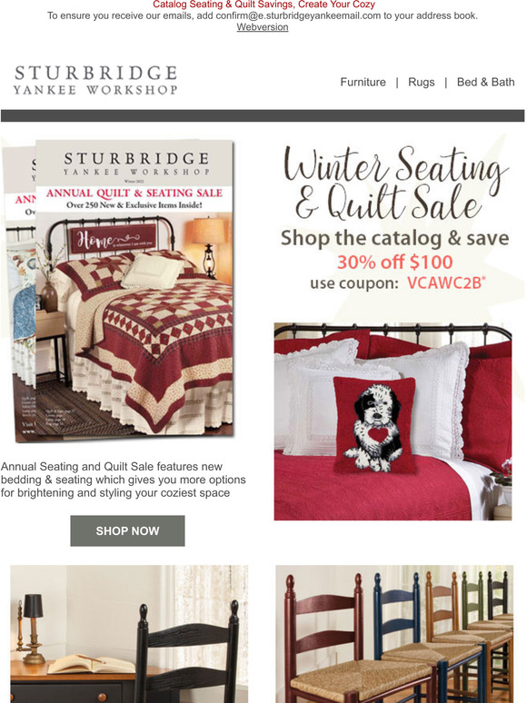 Sturbridge Yankee Seating & Quilt Sale Ends Soon! Save 30