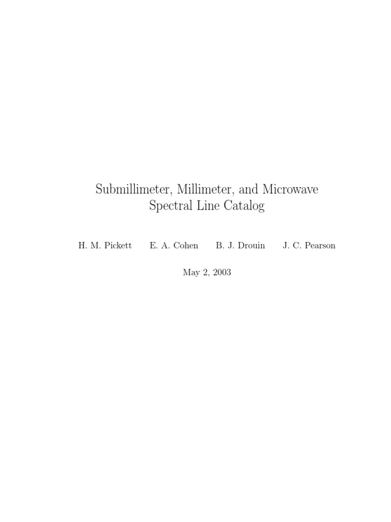 Submillimeter, Millimeter, and Microwave Spectral Line Catalog PDF