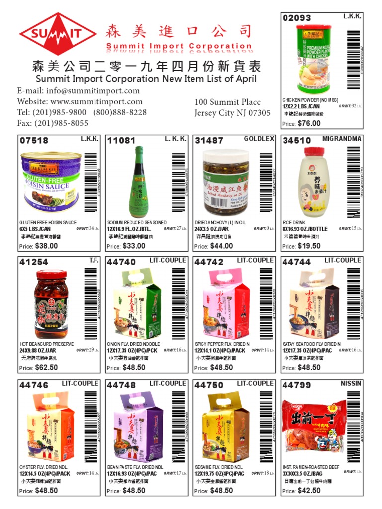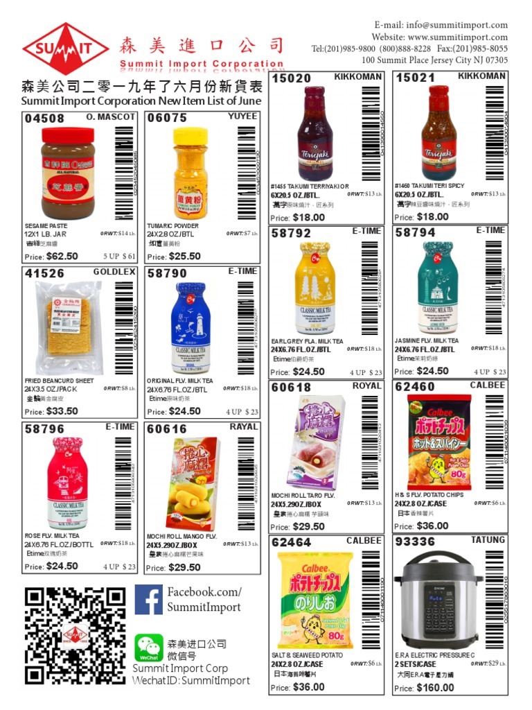 Summit Import Corporation New Item List of June Fax (201) 9858055
