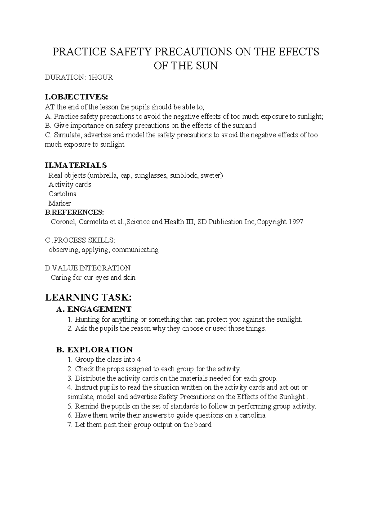 427527624 Practice Safety Precautions on the Efects of the Sun