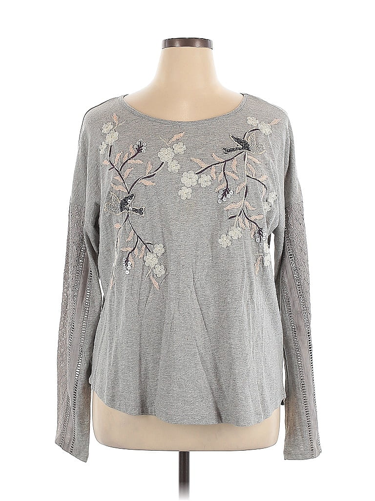 Sundance 100 Cotton Gray Long Sleeve Top Size XL 73 off ThredUp