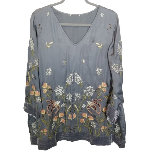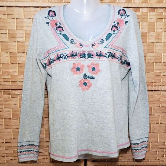 Sundance Catalog Gray Long Sleeve Embroidered Tee