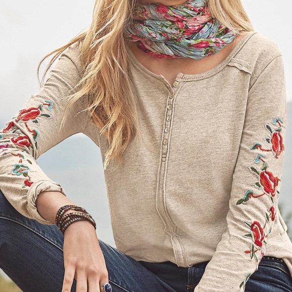 Sundance Tops Sundance Floral Embroidered Long Sleeve Tee Size