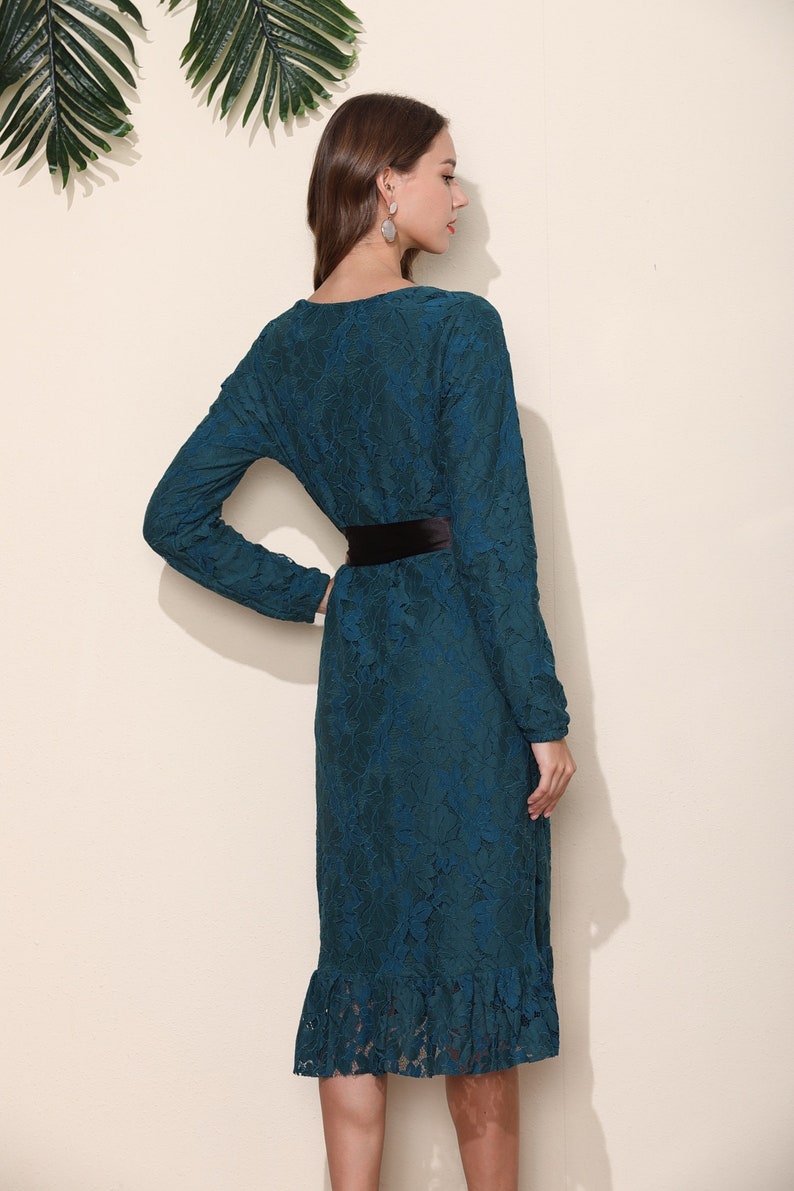 Enrapturing Elegance Green Lace Long Sleeve Midi Dress Lace top long