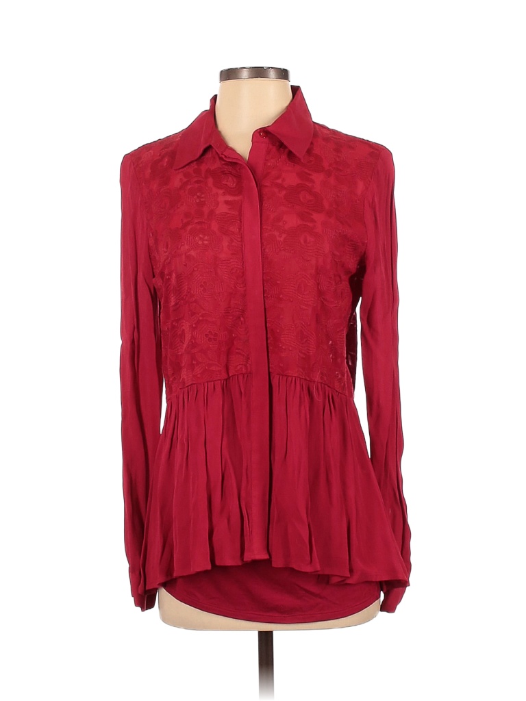 Sundance 100 Rayon Solid Colored Red Long Sleeve Blouse Size M 77