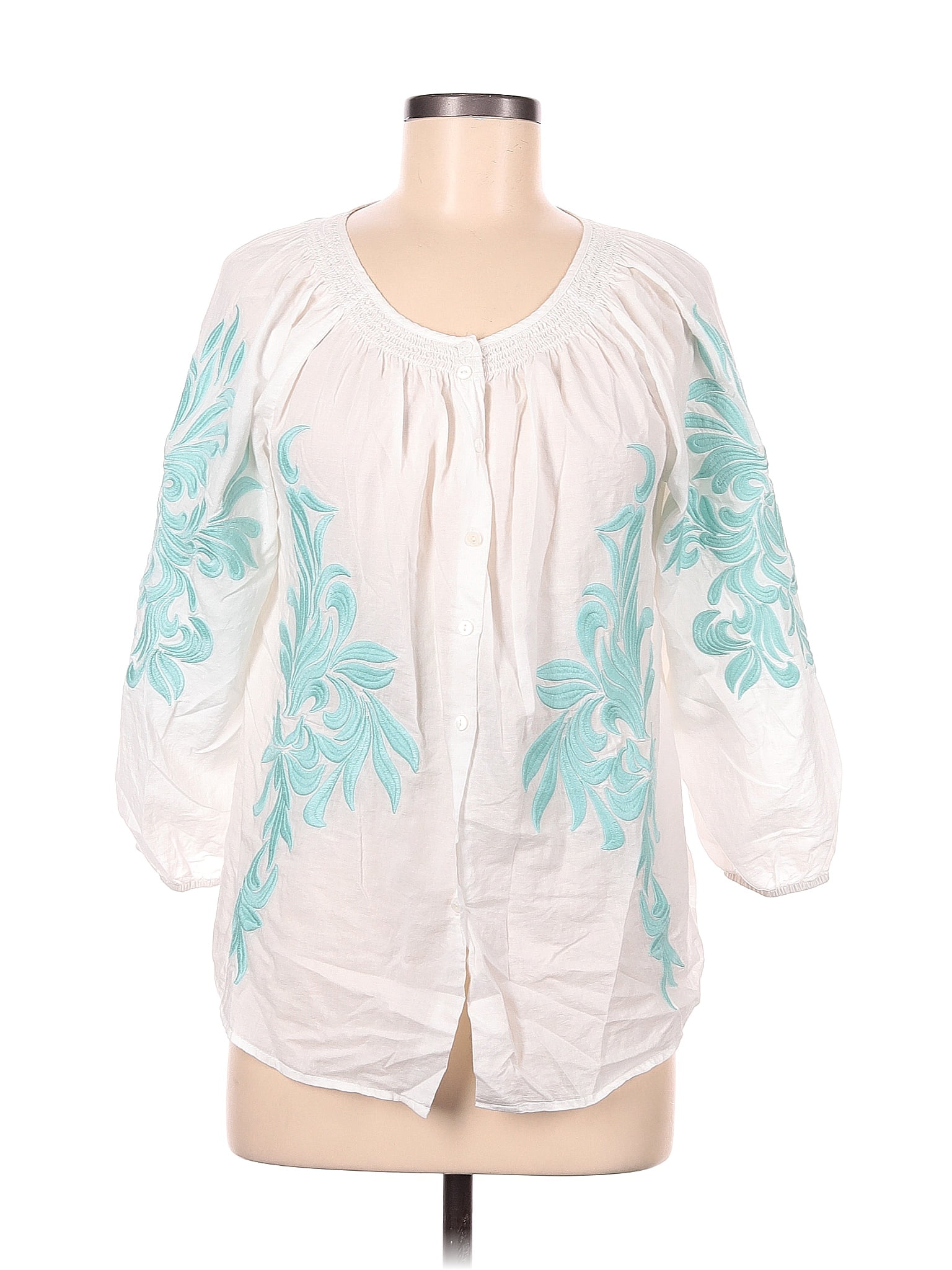 Sundance 100 Cotton White Long Sleeve Blouse Size L 75 off ThredUp