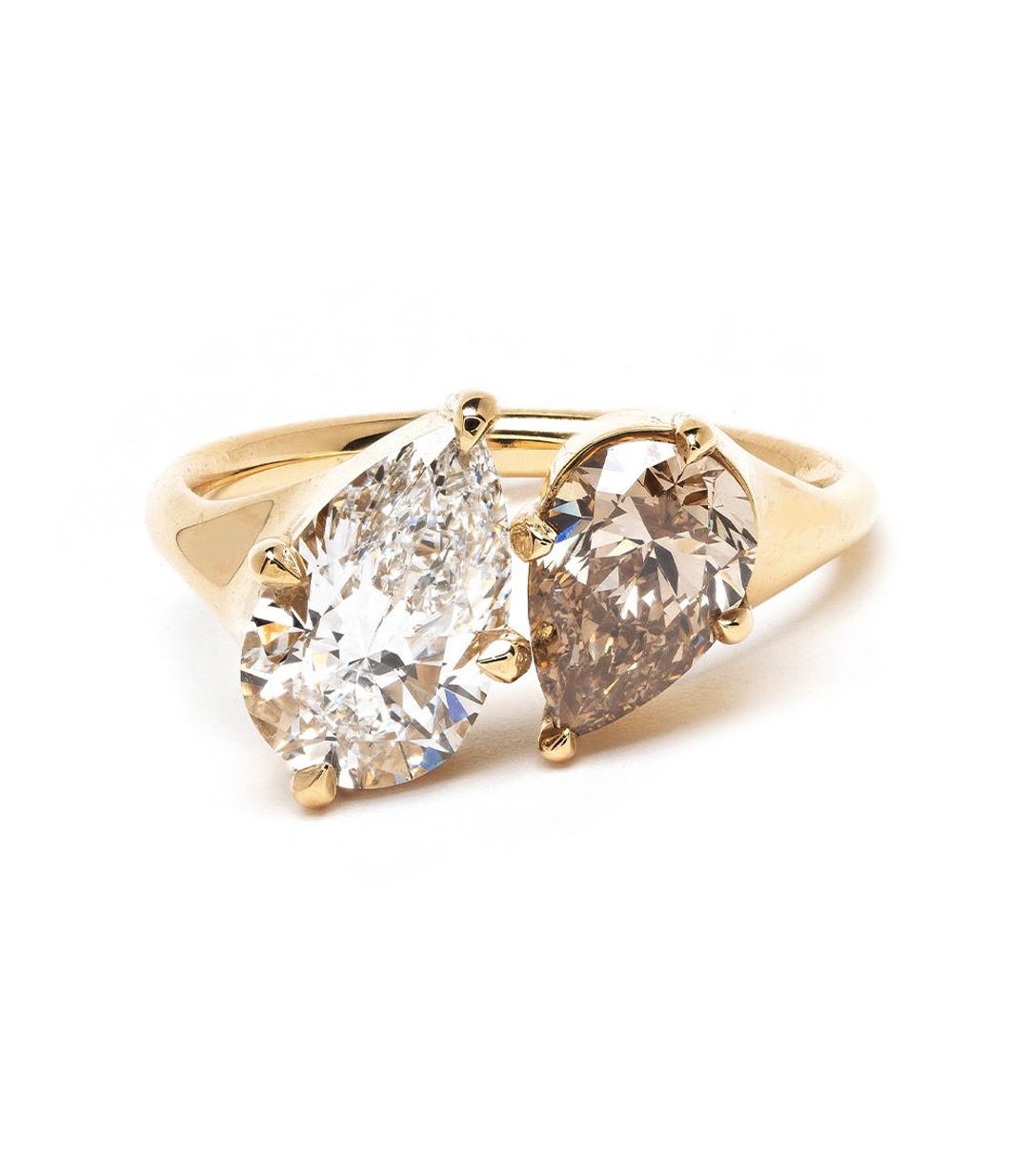 Two Stone Engagement Ring, Moissanite Bridal Ring, Pear Moissanite Ring