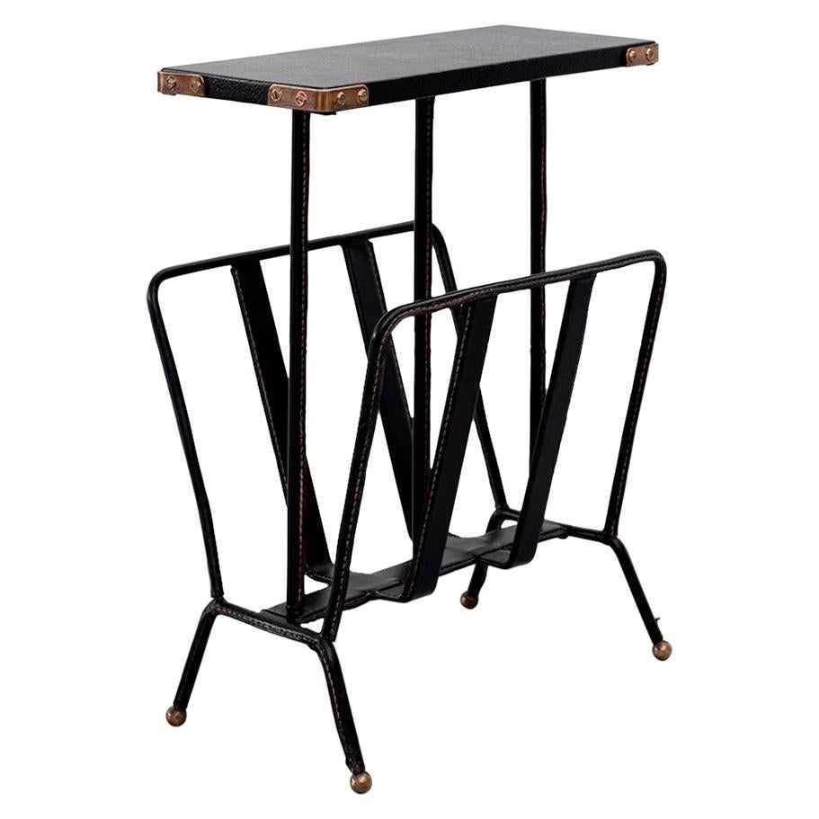 Wrought Iron and Wood Side Table with Magazine Rack from the 1950s For