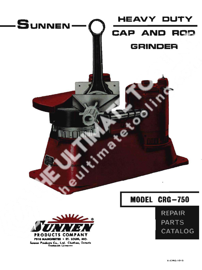 Sunnen CRG750 Heavy Duty Cap Rod Grinder Repair Parts Catalog PDF
