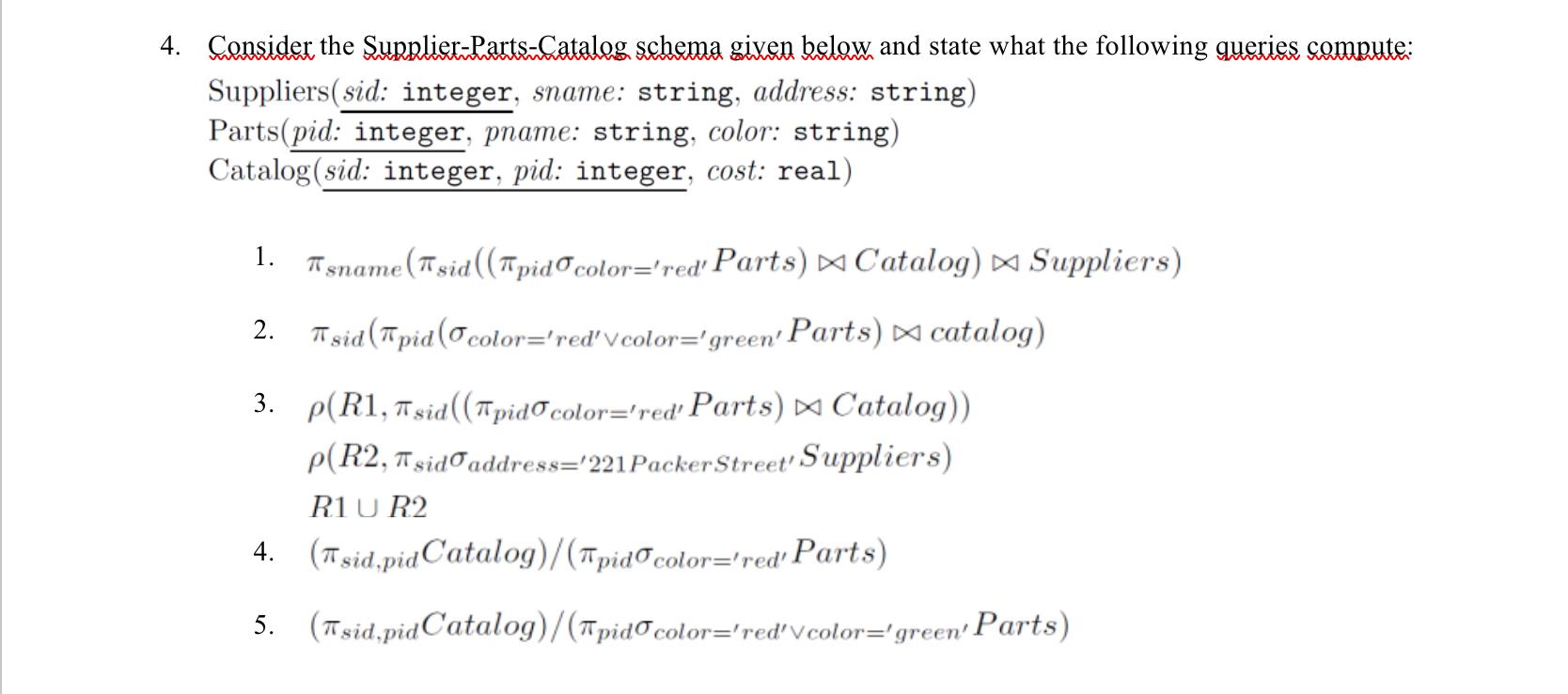 Solved 4. Consider the SupplierParts Catalog schema given