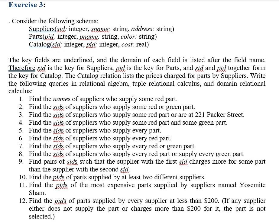 Exercise 3 . Consider the following schema