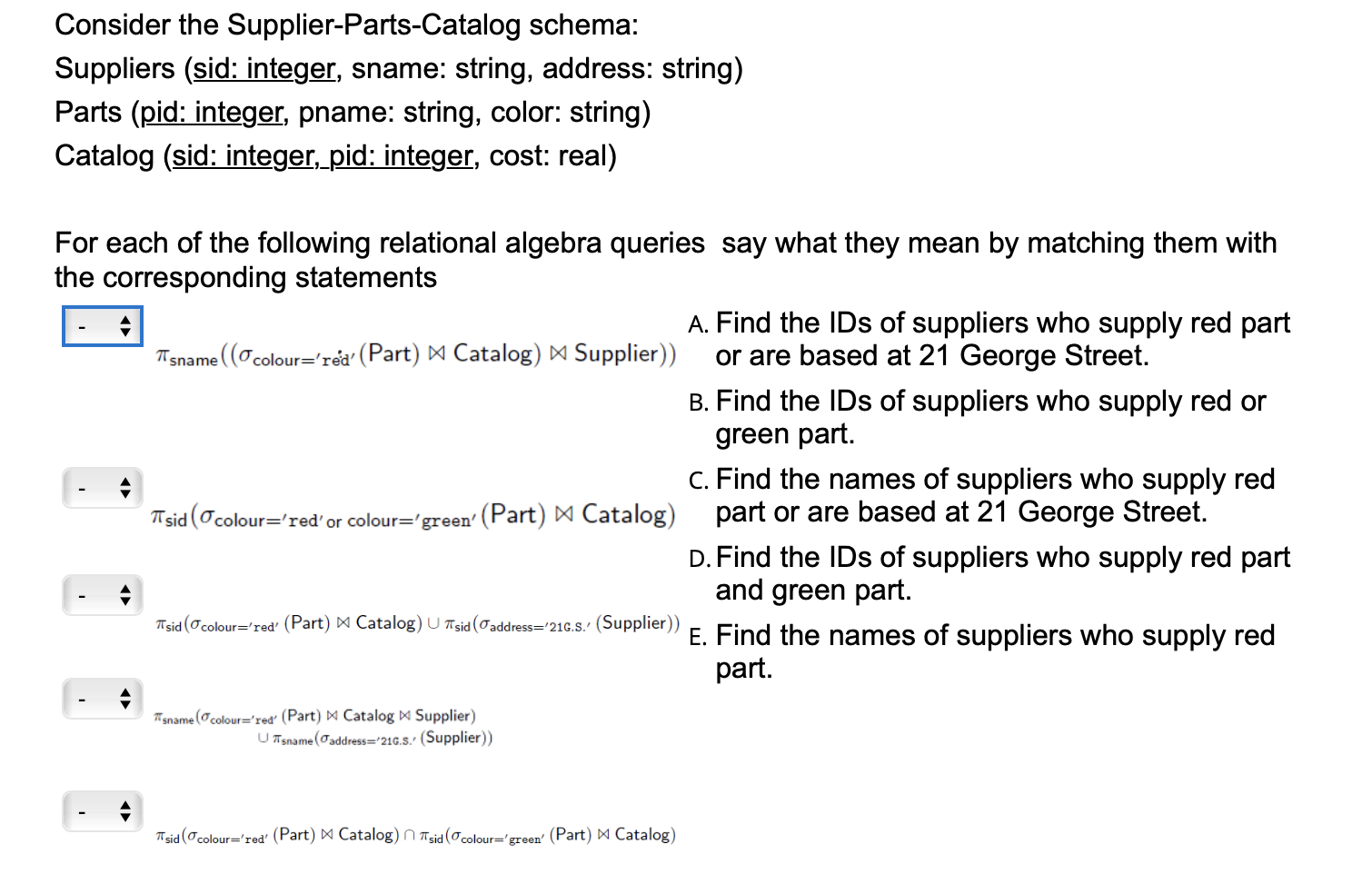 Solved Consider the SupplierPartsCatalog schema Suppliers