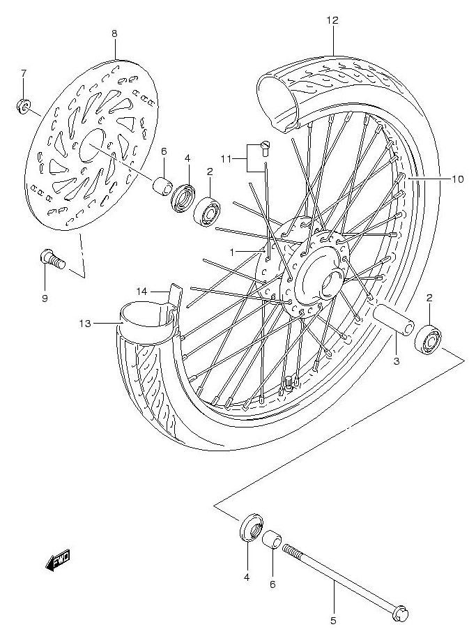 Suzuki Motorcycle 1996 OEM Parts Diagram for REAR WHEEL