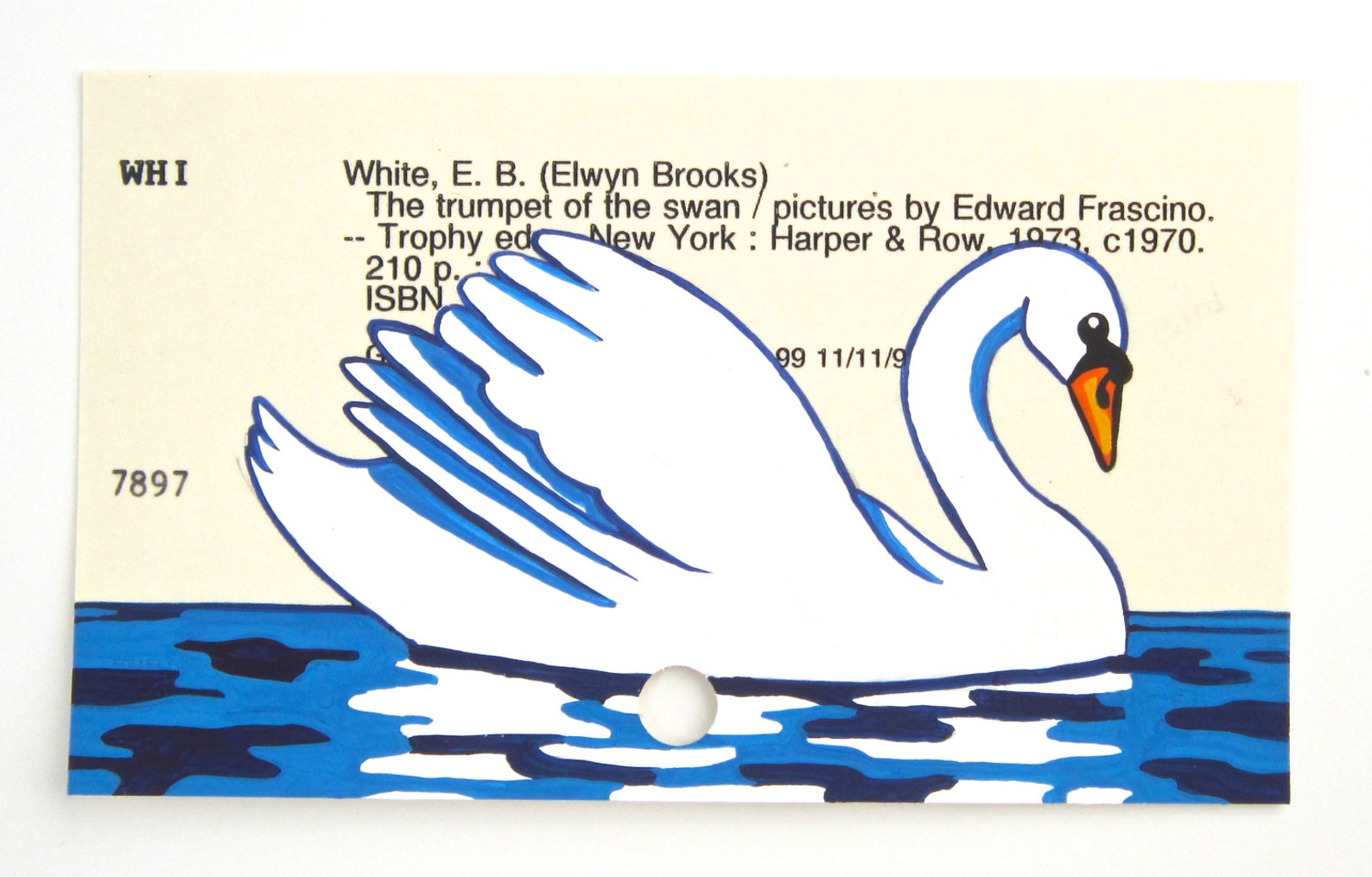 Swan Library Card Art Print of My Painting on Card for the Etsy