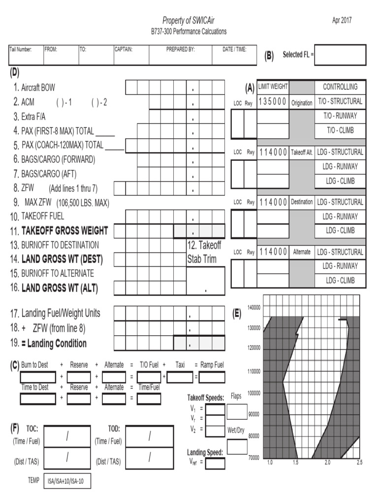 SWIC Weight and Balance With ISA FLAPS Form 1020 PDF