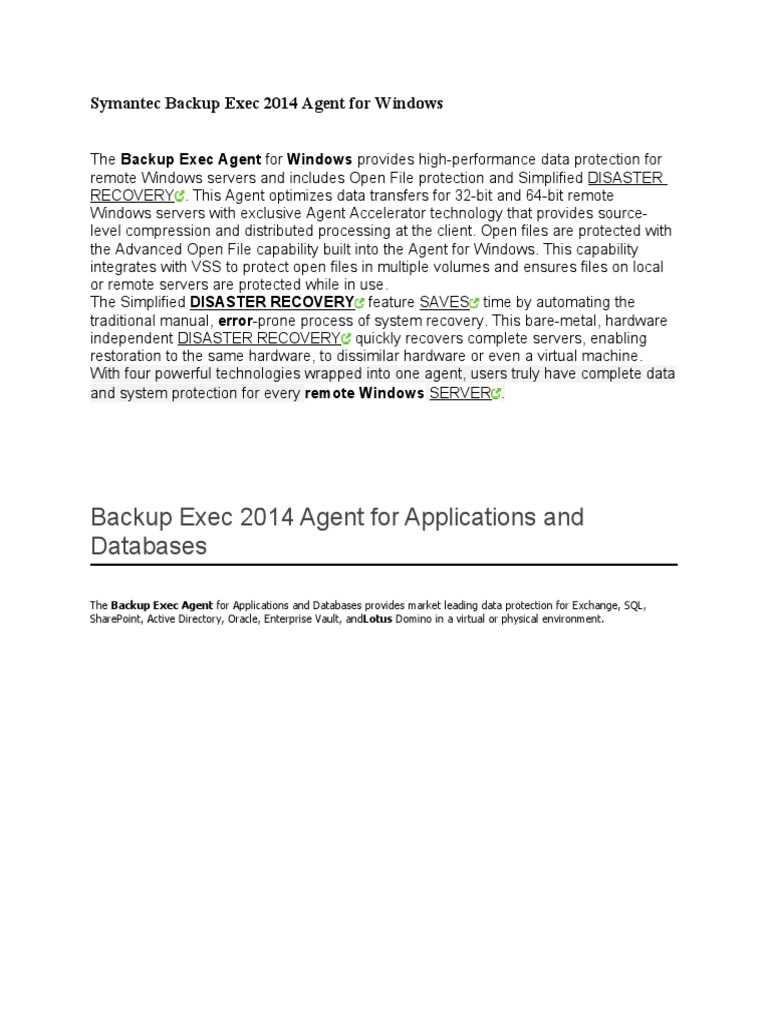 Symantec Backup Exec 2014 Agent For Windows PDF