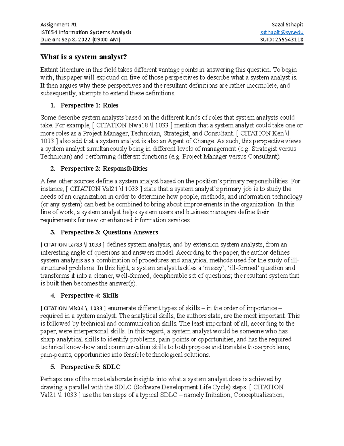 1 Position Sazal Notes IST654 Information Systems Analysis