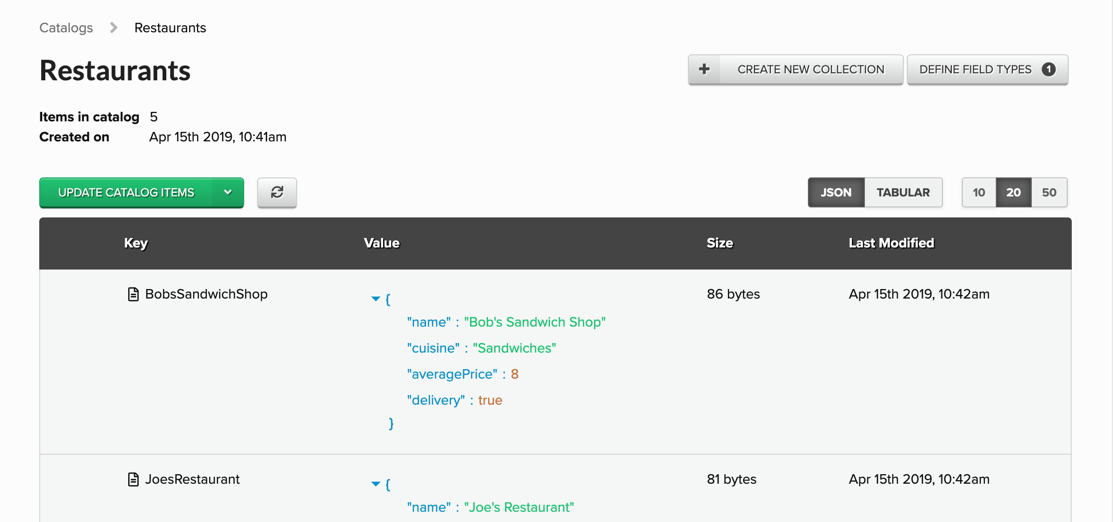 Tabular Catalog