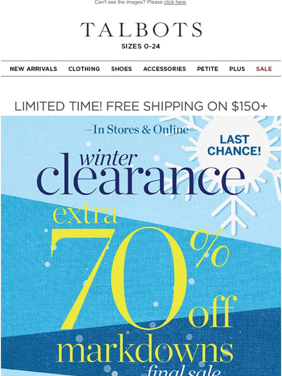 Talbots Winter CLEARANCE—extra 70 off markdowns! Milled