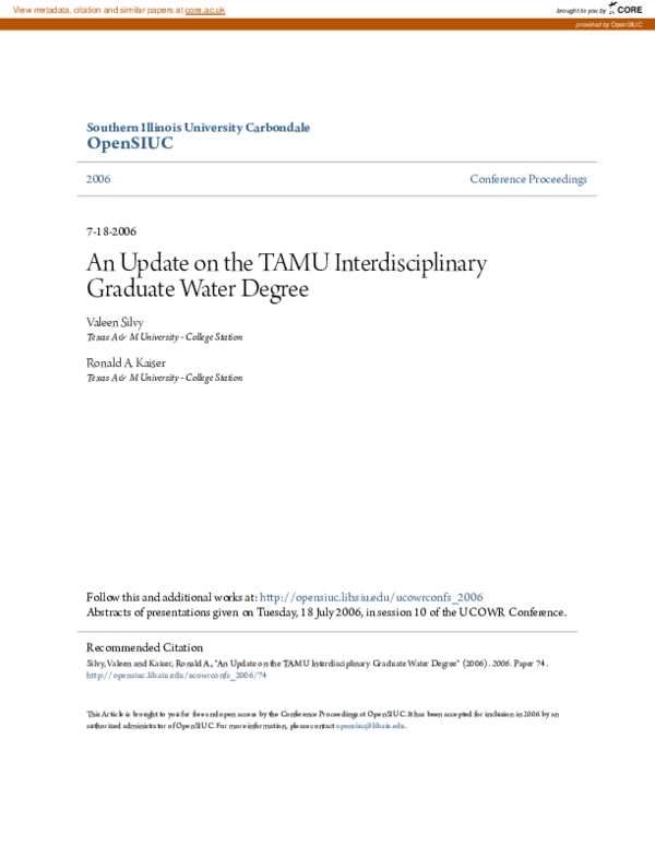 (PDF) An Update on the TAMU Interdisciplinary Graduate Water Degree