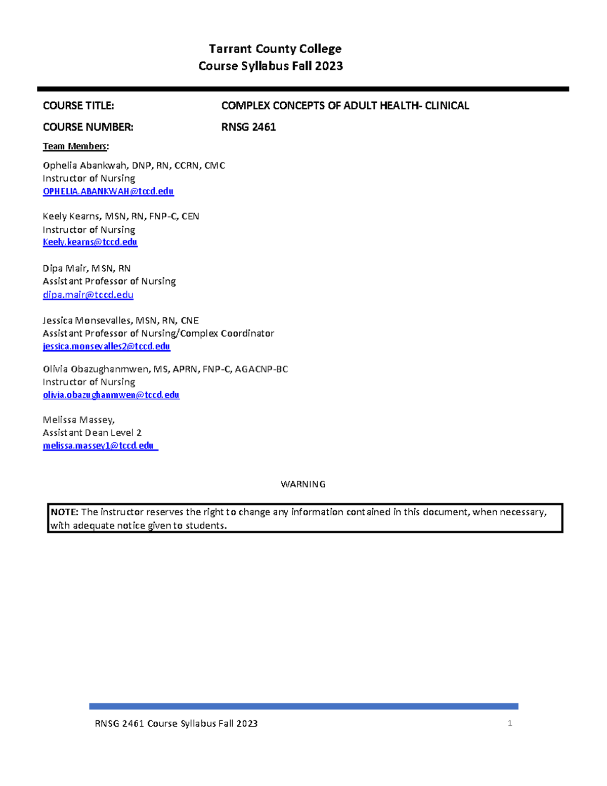 Final Fall23 Clinical CID (1) Tarrant County College Course Syllabus
