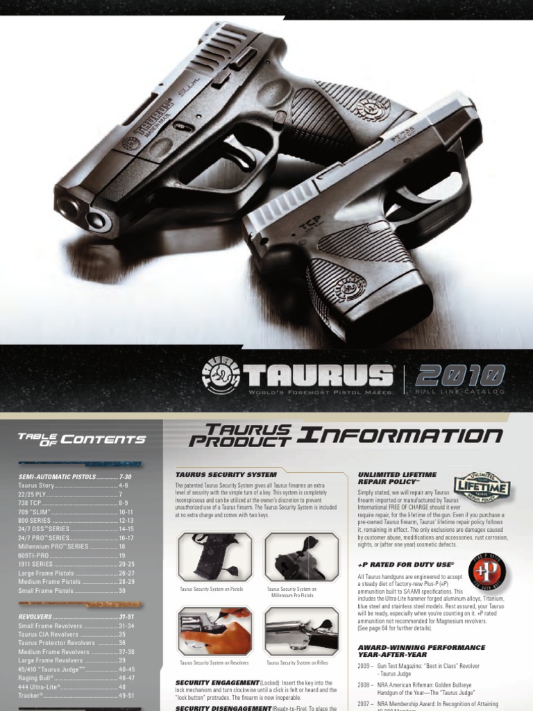 2010 Taurus Catalog PDF Handgun Trigger (Firearms)