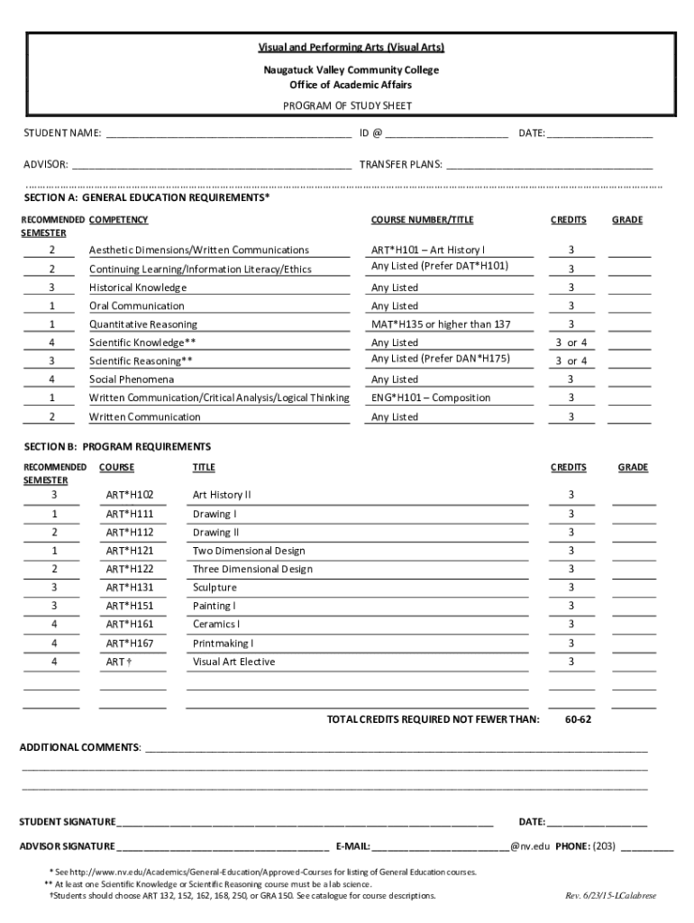 Fillable Online Program Studio Arts, Associate of Applied Arts TCC