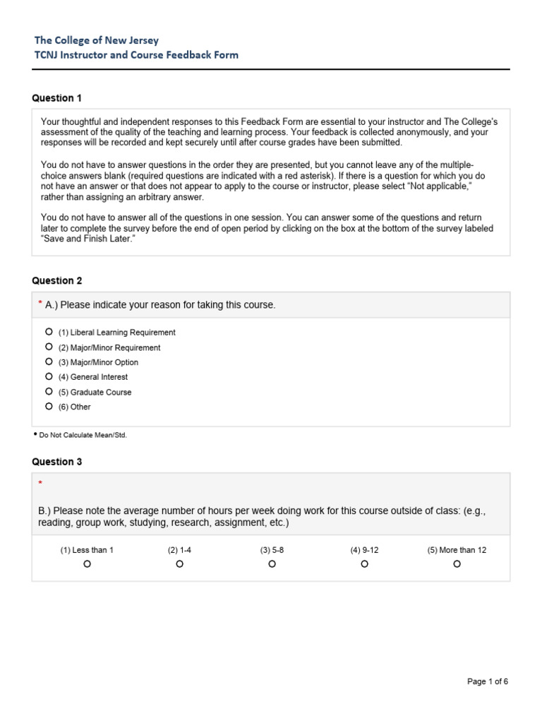 TCNJ Instructor and Course Feedback Survey PDF Knowledge Learning