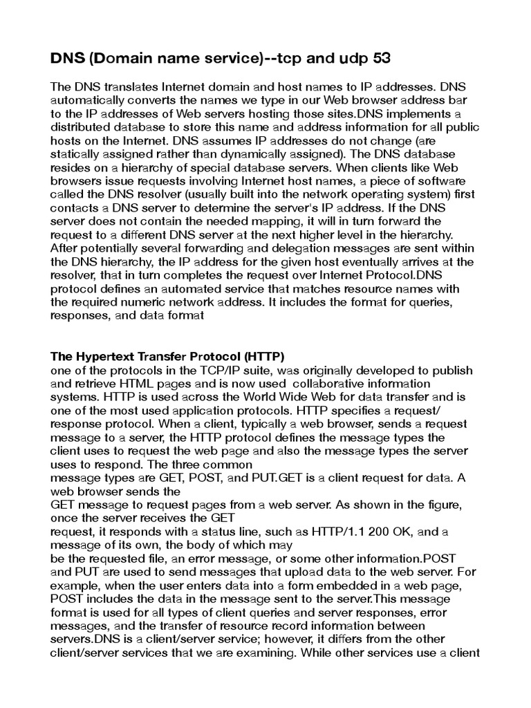 DNS (Domain Name Service) TCP and Udp 53 The Hypertext Transfer