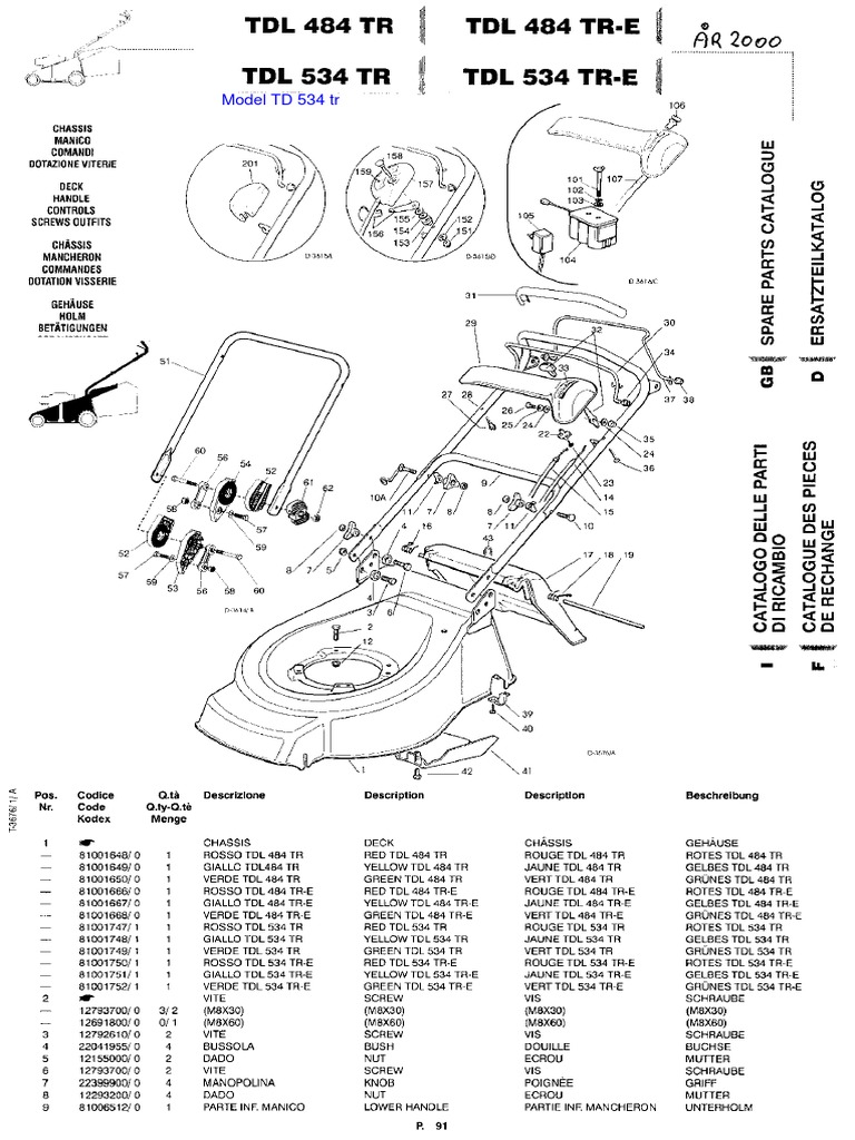 Sekačka TDL 484 TR_katalog Náhradních Dílů 2000