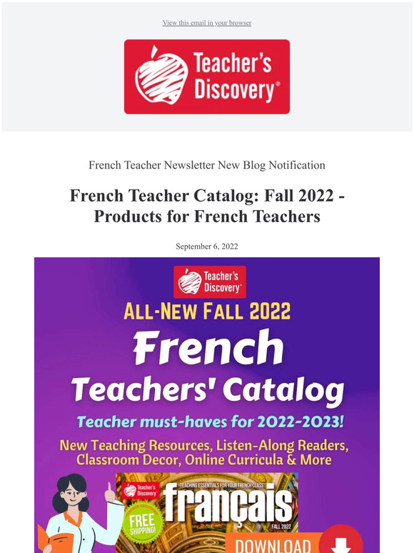 ![Teacher's Discovery [French Teachers] French Teacher Catalog Fall](https://images.milledcdn.com/2022-09-07/2bC13fytKGS6vcf6/c@2x.jpg)